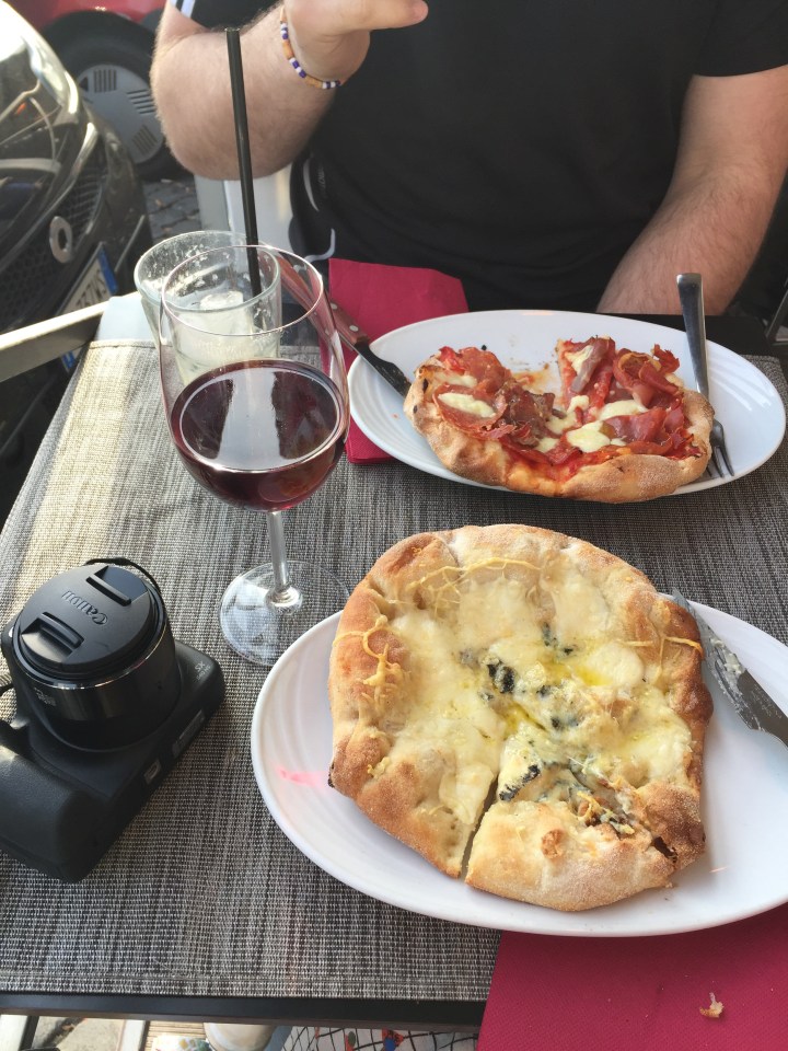 Then for mains I chose a creamy salmon pasta and himself had pizza. I reckon our main meal conversation consisted of ‘mmm’. It would have been a shame to walk away without a desert and at that stage one was enough so we went for ice cream with chocolate and nuts – almost like a Nutella flavour. The entire meal including 2 glasses of wine was under €65. Not bad at all for two, starters, two mains a desert and drinks.